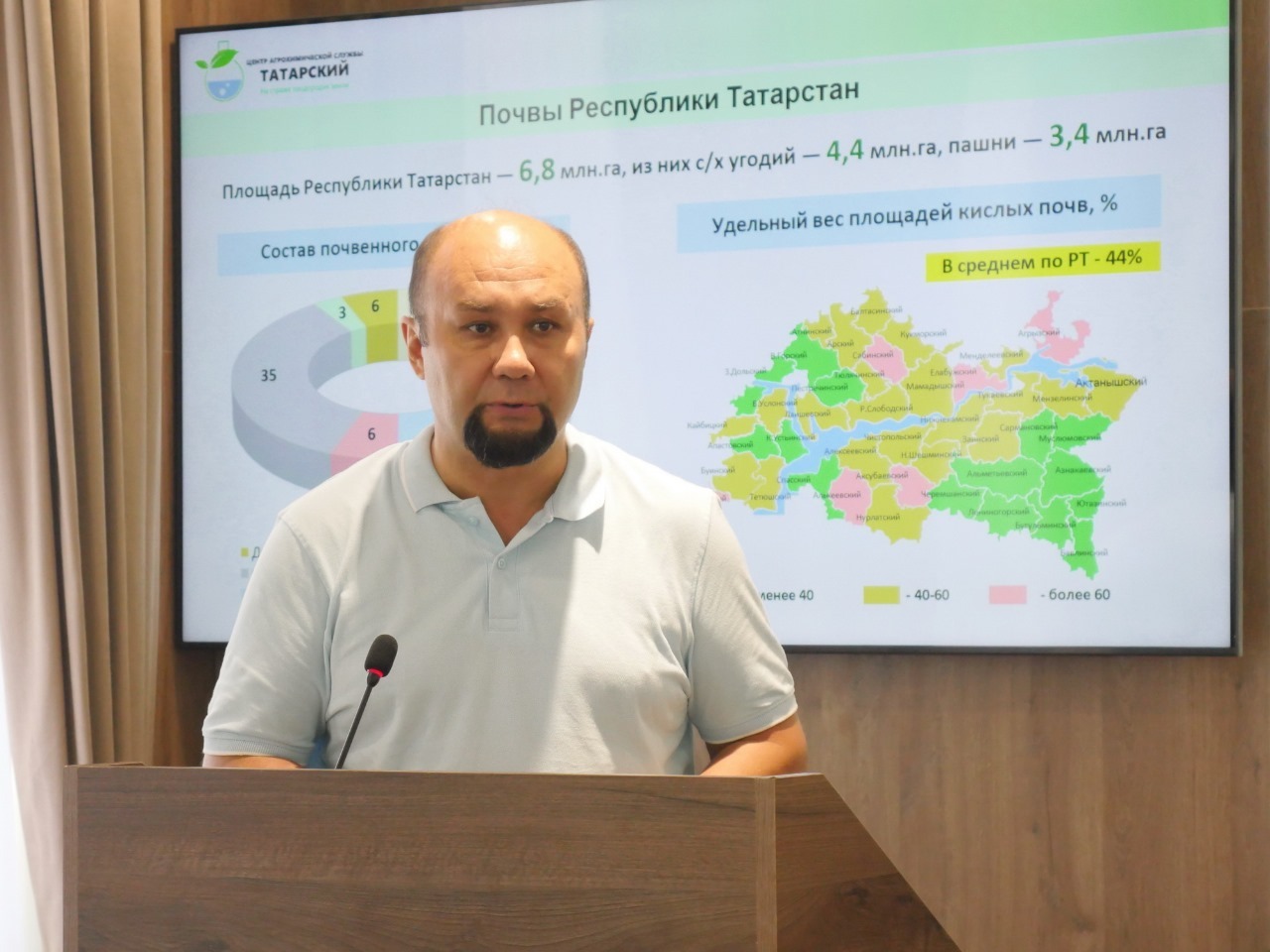 Директор ФГБУ "ЦАС "Татарский" Лукманов А.А. выступил с докладом "Результаты государственного мониторинга пахотных почв Республики Татарстан и пути сохранения и повышения их плодородия", охватив все направления работы центра по данному вопросу.